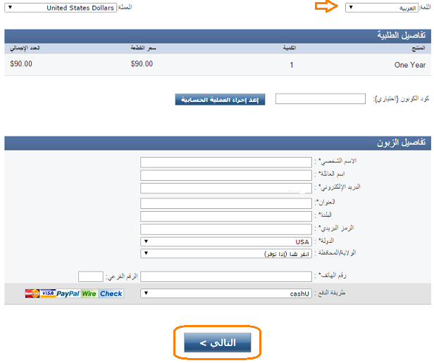 ملاحظة هامة: الدفع عن طريق كاش يو لم يعد متاحا.