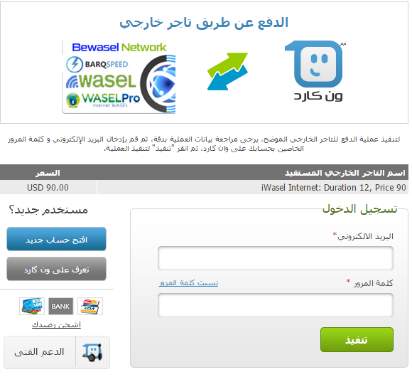 أسهل وسيلة للاشتراك في خدمة واصل برو عن طريق بوابة الدفع الإلكترونية ون كارد.