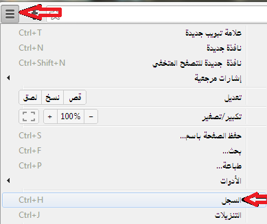 (أو يمكنك أن تضغط Ctrl+H) لفتح نافذة  "السجل" فورا وتخطي الخطوة الأولي).