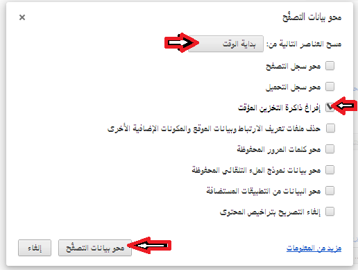 علم على زر "إفراغ ذاكرة التخزين المؤقت" وأزل العلامة أمام باقي الخيارات.