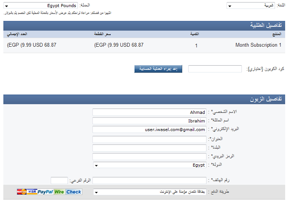 اضغط هنا لتجد شرح مفصل لكيفية إتمام عملية الاشتراك باستخدام بطاقات الائتمان والباي بال في واصل برو في بي إن