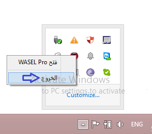 إذا كنت لا ترى أيقونة التطبيق في شريط المهام، اضغط لإظهار الرموز المخفية ثم اضغط يمين الفأرة على أيقونة واصل برو واختر "الخروج".