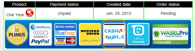 An unpaid invoice will appear with the chosen period, click on the cashU button.